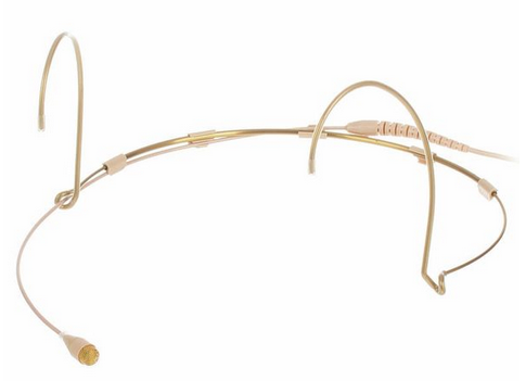 Deze professionele headset microfoon (druppel), op een zeer dunne headset en beige van kleur, valt niet zo op als deze gedragen wordt. De spraak/zang-kwaliteit van deze pro-set is van top-kwaliteit.