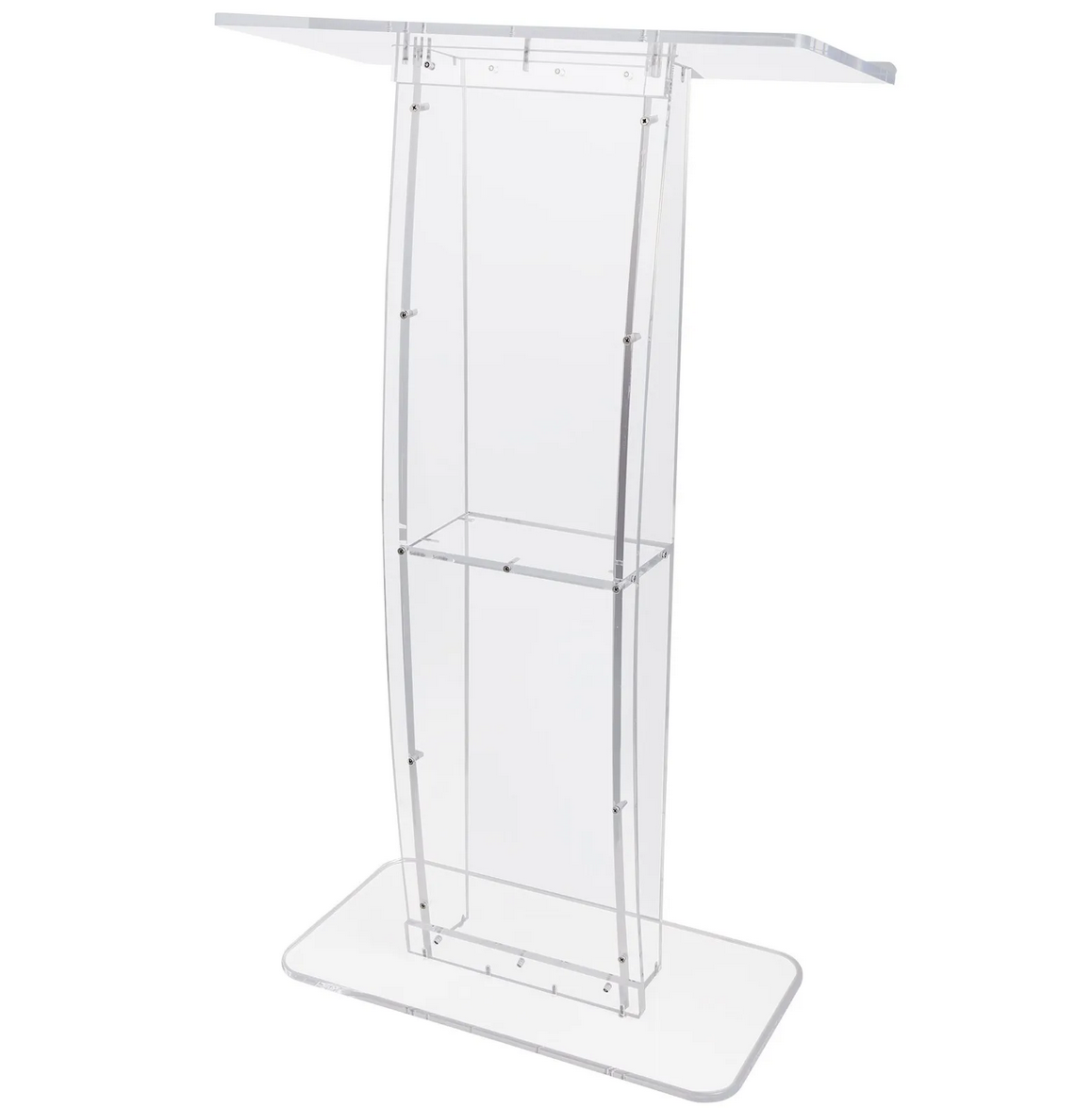 Chique en elegante podiumstandaard in een hoogte van ca. 1.20m biedt een uitstekende houdingsondersteuning. Deze acrylpreekstoel heeft een helderheid van 95%, waardoor hij kristalhelder is en geschikt voor elke stijl en inrichting. Schuin werkblad met stopper en extra plankje in het midden.