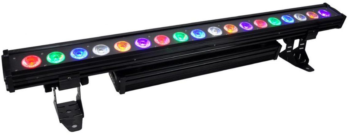 Met een lengte van 1m breed is deze RGBAW led balk geschikt om gevels en grote vlakken uit te lichten of langs de rand van het podium. Door naast de mogelijk mix van Rood, Groen en Blauw ook de kleuren Wit en Amber toe te voegen geeft dit een ruim kleurengamma beschikbaar! Aanstuurbaar via DMX controller (apart bijhuren) of stand-alone. Deze balk is geschikt voor buitengebruik!