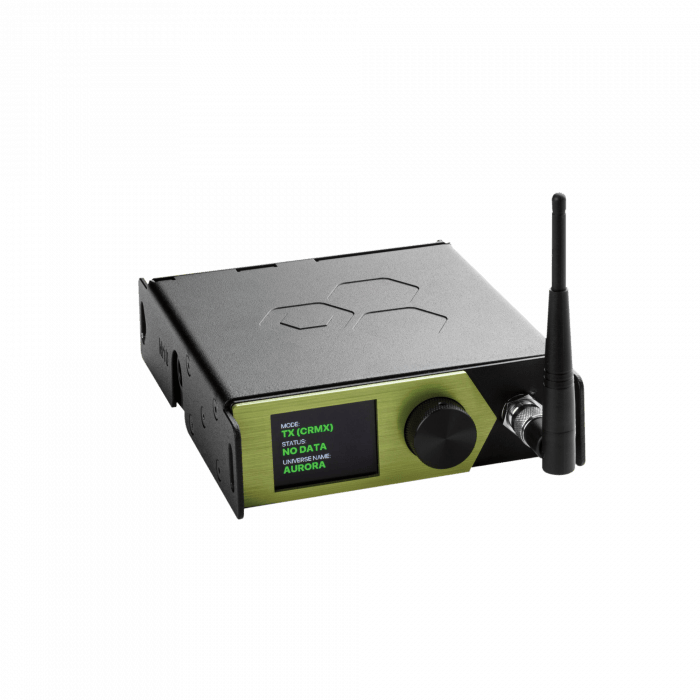 De LumenRadio Aurora is een DMX/RDM-transceiver die gebruik maakt van LumenRadio CRMX-technologie, samen met Wi-Fi- en Bluetooth-connectiviteit. Hij biedt betrouwbare draadloze DMX die zowel CRMX- als W-DMX-compatibel is. De transceiver heeft een vertraging van 5 ms, 128-bits encryptie en foutcorrectie bij de maximale verversingsfrequentie voor een heel universe.